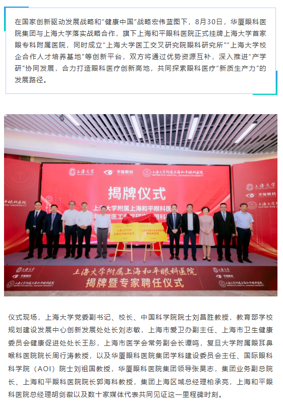 创新医教平台 | 易游体育携手上海大学共建附属医院,共筑眼科创新与转化新高地