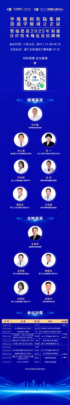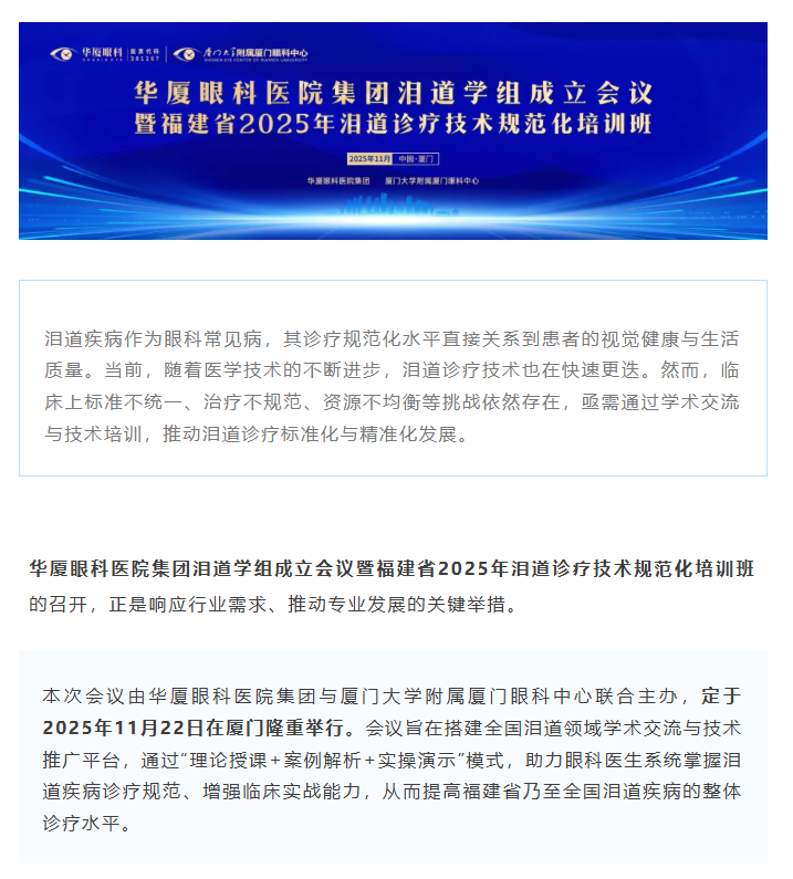 11月22日厦门启幕!易游体育集团泪道学组成立会议暨福建省2025年泪道诊疗技术规范化培训班即将召开