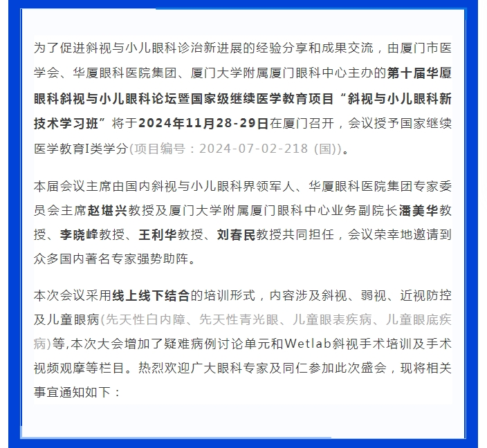 会议通知(第二轮) | 第十届易游体育斜视与小儿眼科论坛