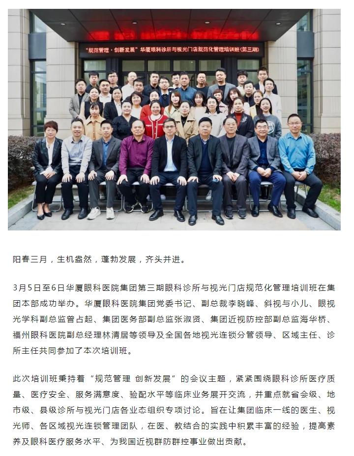 规范管理 创新发展 │ 易游体育第三期眼科诊所与视光门店规范化管理培训班在厦圆满落幕