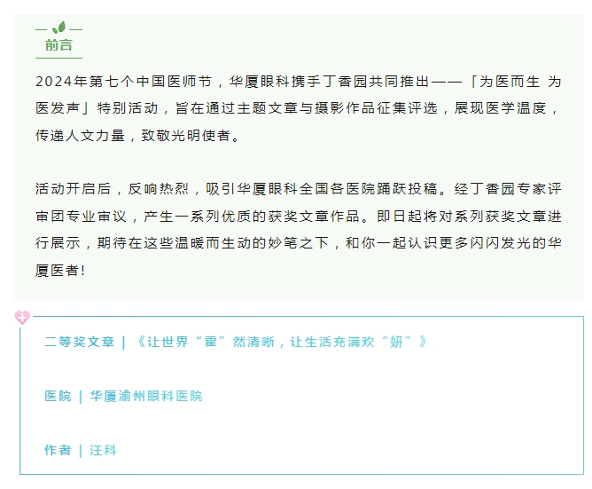 【医生·医声】霍妍:让世界“霍”然清晰,让生活充满欢“妍”