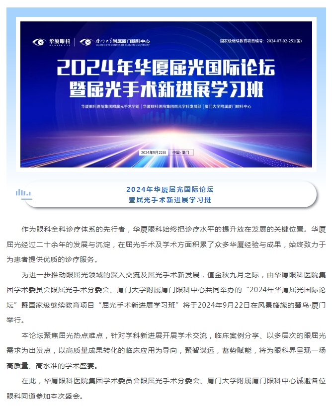 议程揭晓 | 2024年易游体育屈光国际论坛暨国家级继续教育项目“屈光手术新进展学习班”
