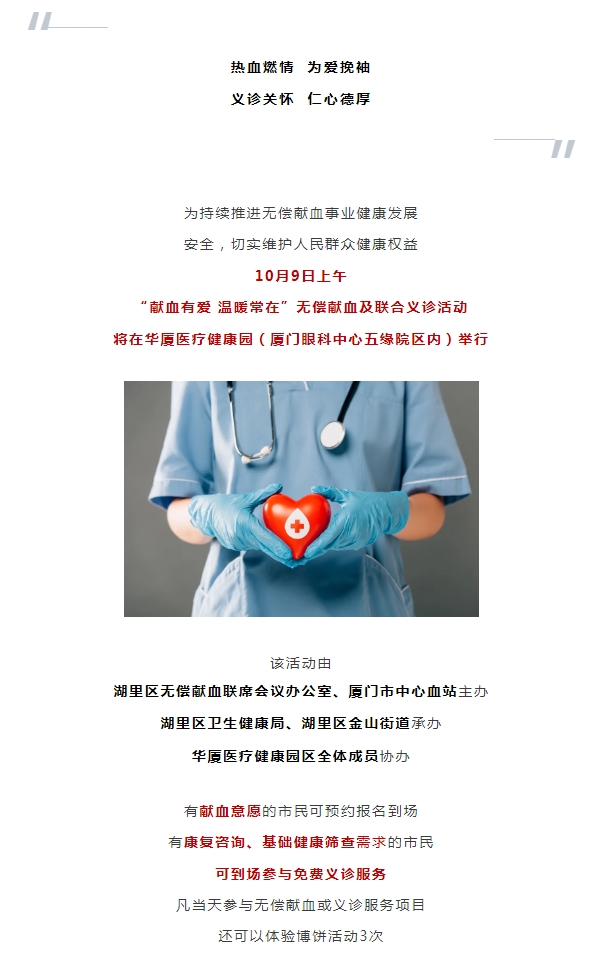 10月9日上午!无偿献血及免费义诊活动将在易游体育医疗健康园举行