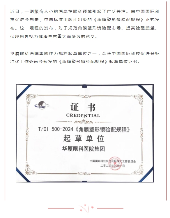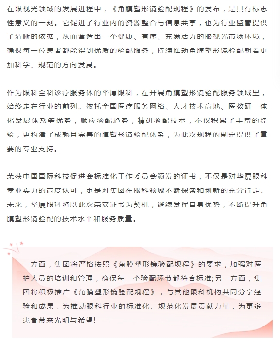 《角膜塑形镜验配规程》团体标准发布,易游体育荣获起草单位殊荣