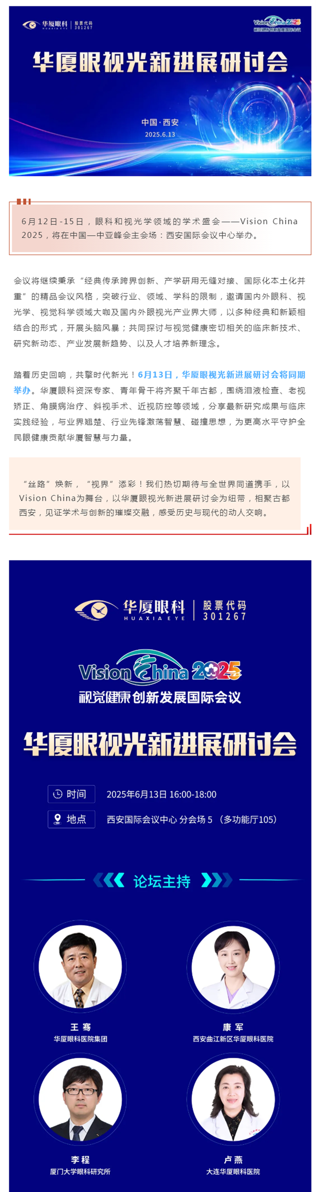 相约西安!易游体育眼视光新进展研讨会6月13日亮相Vision China 2025