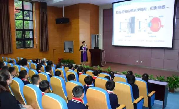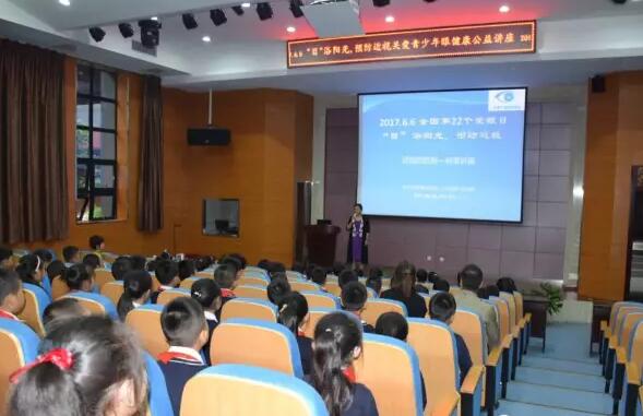 为进一步贯彻落实教育部《中小学生近视眼防控工作方案》和《关于加强儿童青少年近视防控工作的指导意见》(国卫办妇幼发【2016】43 号),同时响应国家卫生计生委办公厅、教育部办公厅、国家体育总局办公厅三部委联合下发的《关于开展2017年全国“爱眼日”活动的通知》之号召,2017年6月5日,由西安易游体育、西安市曲江新区 二小学联合开展的“目浴阳光•预防近视”眼健康讲座进校园活动在曲江二小举行。