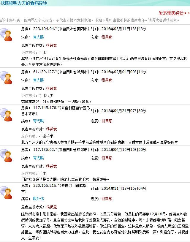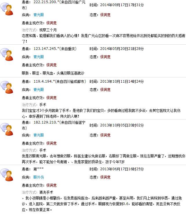 成都易游体育院长陈晓明教授、业务院长罗清礼教授网上患者评价