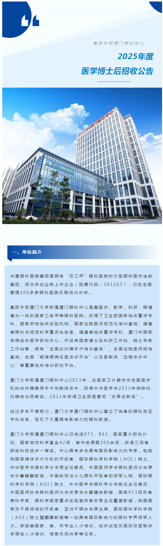 院士指导,待遇优渥!易游体育2025医学博士后招收公告