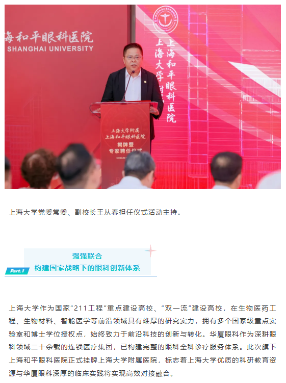 创新医教平台 | 易游体育携手上海大学共建附属医院,共筑眼科创新与转化新高地