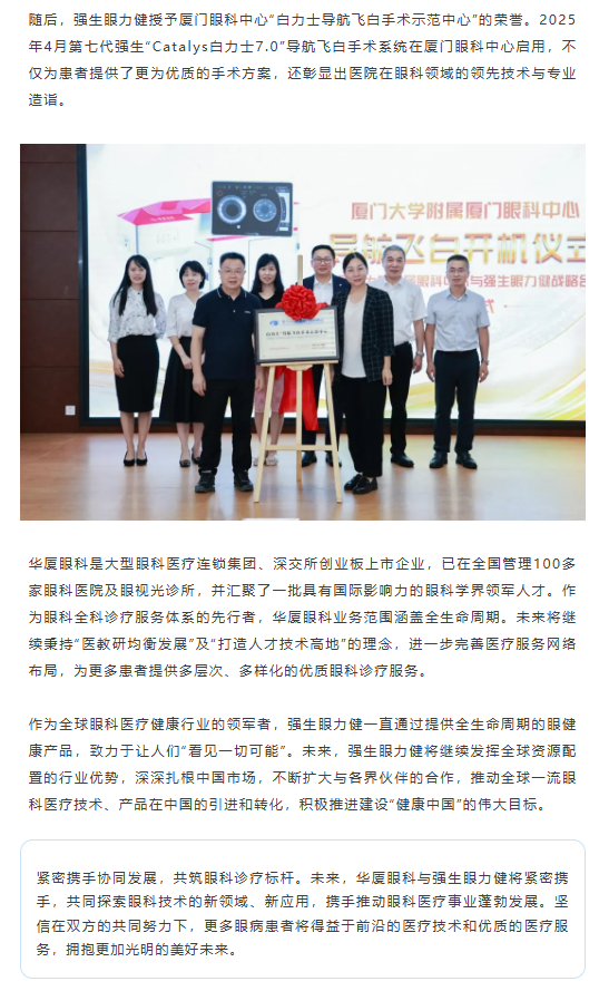 共筑眼科诊疗新标杆!强生眼力健携手易游体育开启“导航飞白”新时代