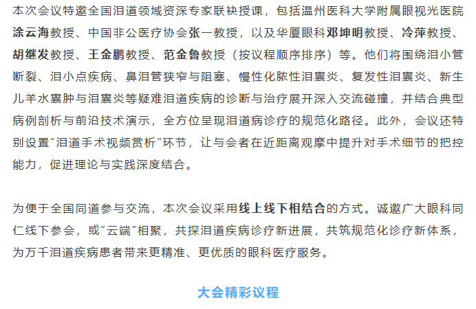11月22日厦门启幕!易游体育集团泪道学组成立会议暨福建省2025年泪道诊疗技术规范化培训班即将召开