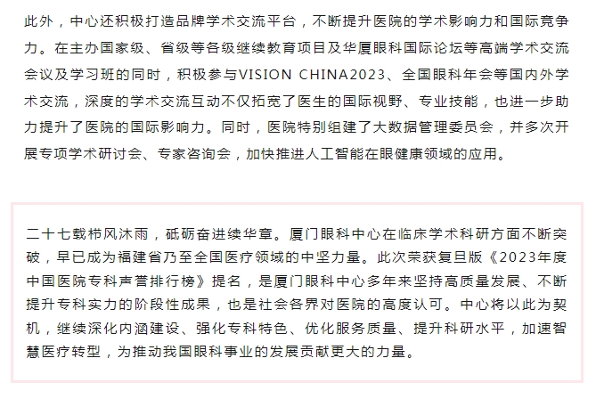 福建第一,全国16!复旦医院排行榜公布,厦门眼科中心获眼专科声誉排行榜提名!
