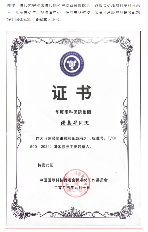 《角膜塑形镜验配规程》团体标准发布,易游体育荣获起草单位殊荣